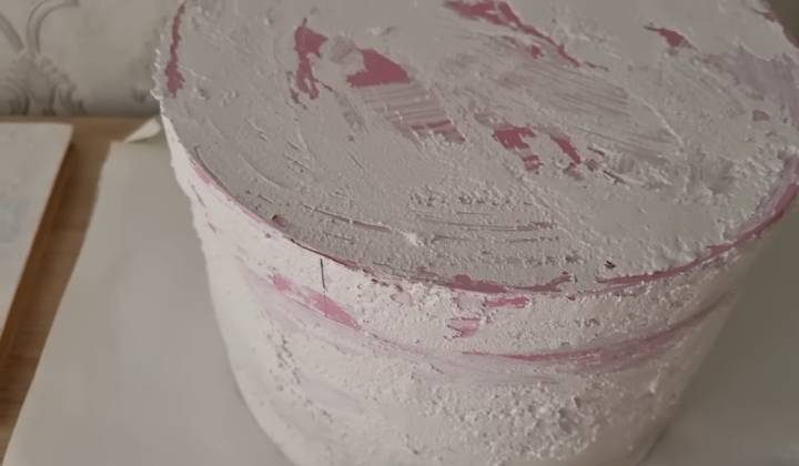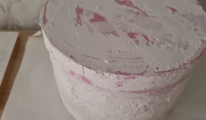 Возьмите сухой клей для мозаики, разведите обычной акриловой белой краской. Нанесите кисточкой на коробку и крышку, дождитесь высыхания. После этого на столярный клей ПВА приклейте красивые детали, сделанные из жидкого пластика и силиконовых молд. Можно делать цветы, листочки, необычные узоры.