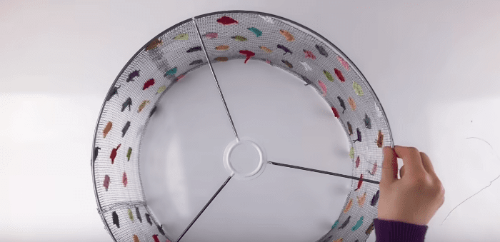 Также при помощи проволоки скрепляем получившийся абажур и каркас для него друг с другом. Готово!