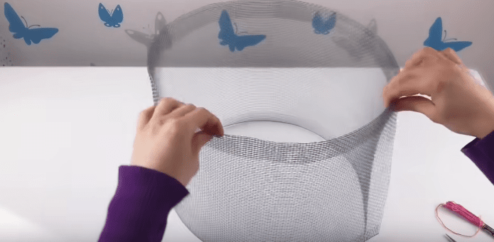 Края заготовки сшиваем при помощи тонкой металлической проволоки.