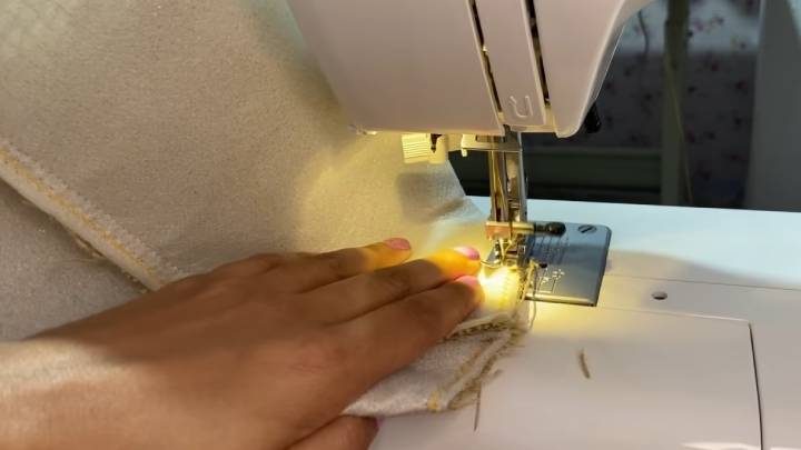 А вырезанные углы сплющить и прошить на машинке. Также прошить полностью нижнюю сторону.
