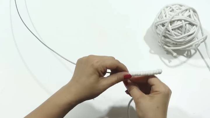 Теперь возьмите толстую проволоку, обмотайте её верёвкой или джутом.