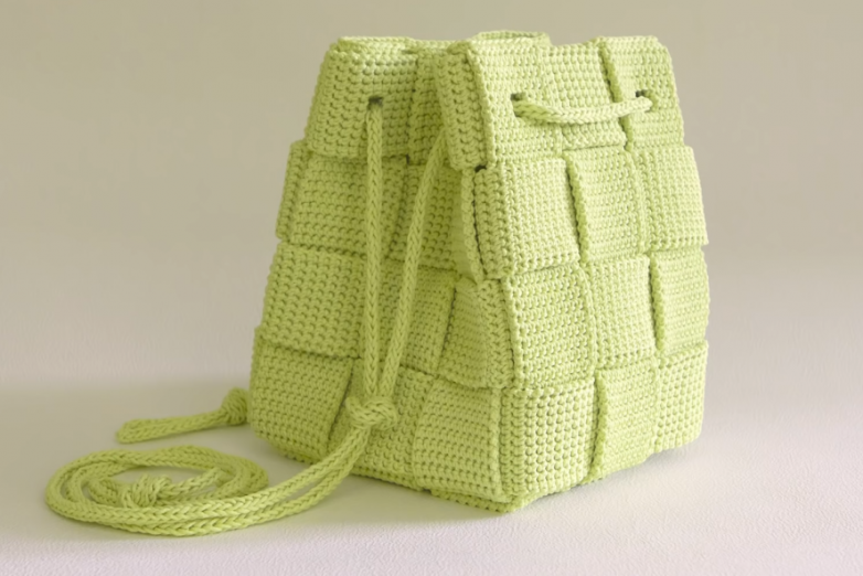 Эффектную объемную сумку при желании могут связать крючком даже начинающие мастерицы. Стильная и оригинальная сумка отлично держит форму, а наличие шнуров дает возможность моделировать.