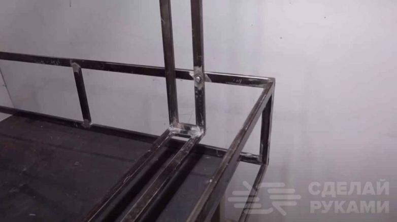 Первым делом необходимо нарезать заготовки из профильной трубы. После этого свариваем два прямоугольных каркаса.Первый каркас нужен для изготовления стенки, второй — для кровати.