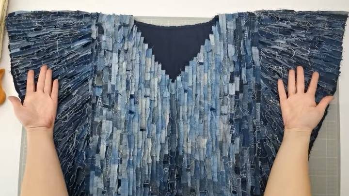 Оставшиеся нитки из джинсов придётся доставать вручную. На это уйдёт какое-то время. После вытаскивания всех ниток джинсовая накидка будет смотреться совсем по-другому!