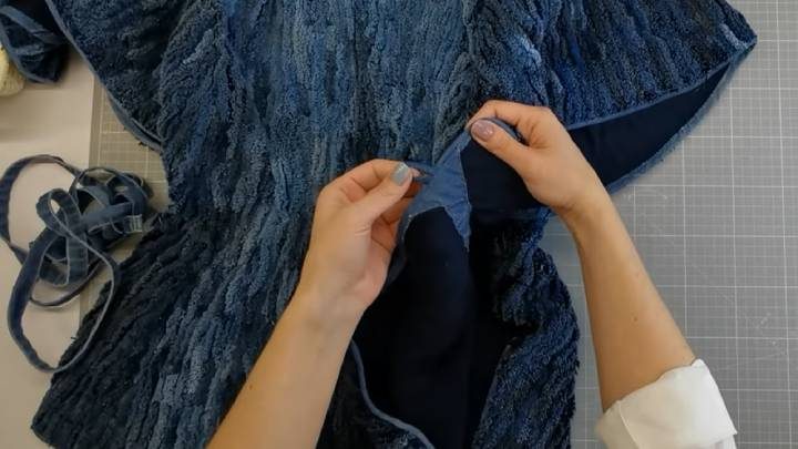 Подробнее о том, как сшить накидку в технике джинсель, смотрите в видео ниже: