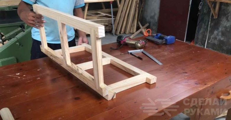 С помощью мебельных петель крепим их к каркасу. После этого останется только обработать готовое изделие шлифовальной машинкой и покрыть лаком или покрасить.