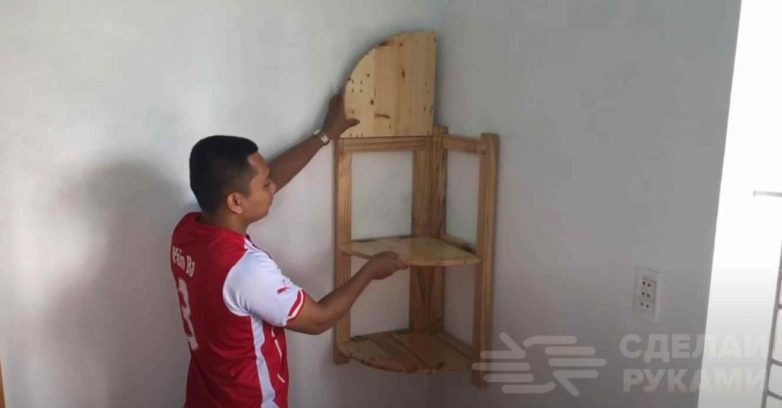 Например, автор YouTube канала предлагает сделать складную угловую полку. Конструкция очень простая и собрать ее под силу каждому.