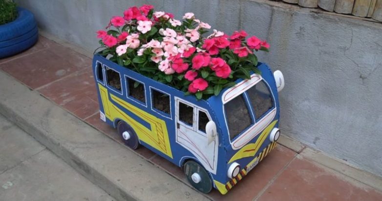 Чудесная клумба-автобус станет оригинальным украшением участка и, конечно, поднимет настроение каждому, кто ее увидит.