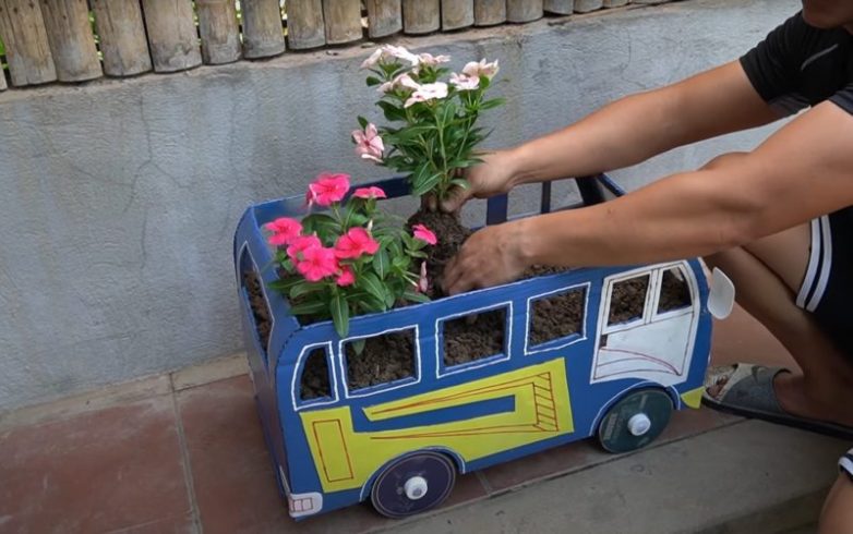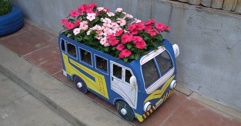 Ищите способ оригинально оформить свой участок? Тогда эта идея клумбы в виде очаровательного автобуса для вас. Сделать такую клумбу очень просто, выглядит она необычно и интересно.