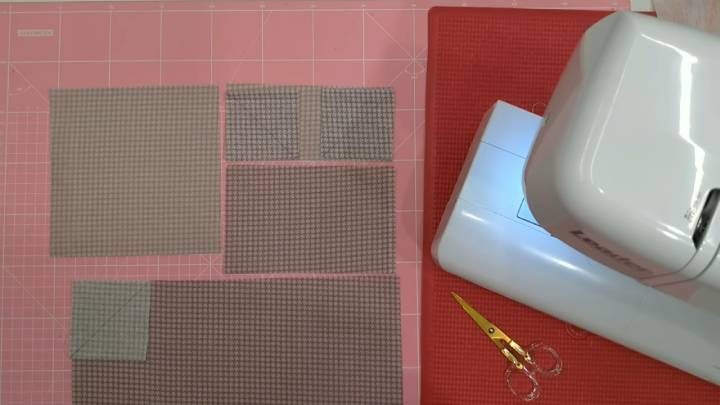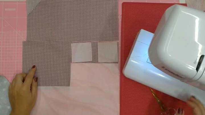 На каждом маленьком квадрате 7 и 7,5 см сделайте диагональную полосу. По ней прошейте на машинке, соединив детали.