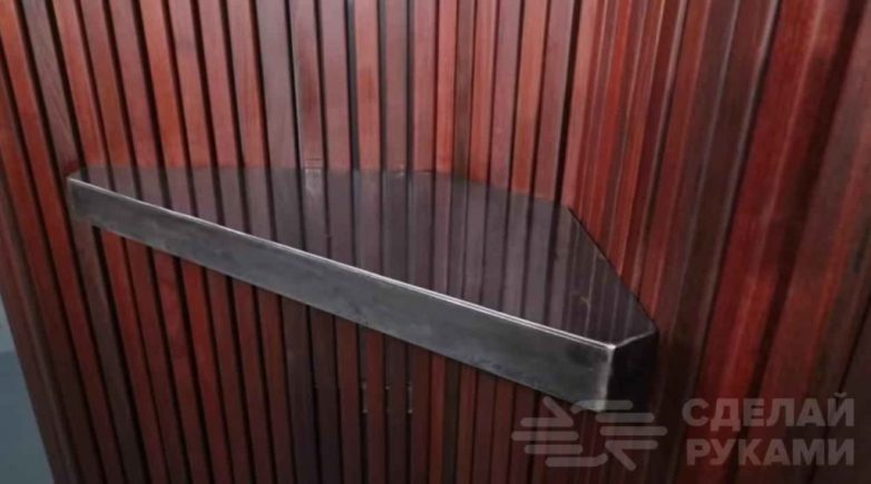 С тыльной стороны перегородки крепится металлическая полка, на которой будут располагаться спиртные напитки.