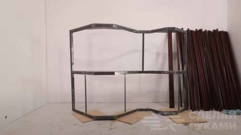 Для изготовления такой конструкции автор использует металл и дерево. Каркас будет металлическим, что обеспечит прочность и надежность.