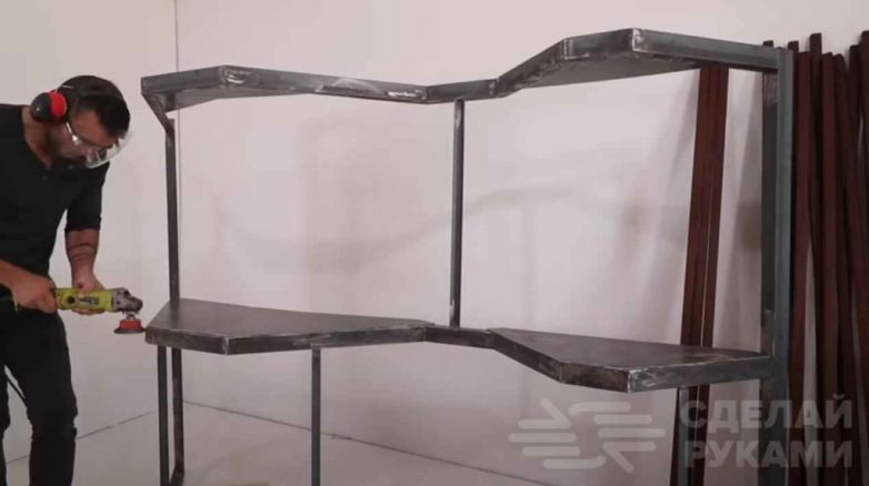 Столик и полки изготовлены из листового металла. Привариваются к каркасу.