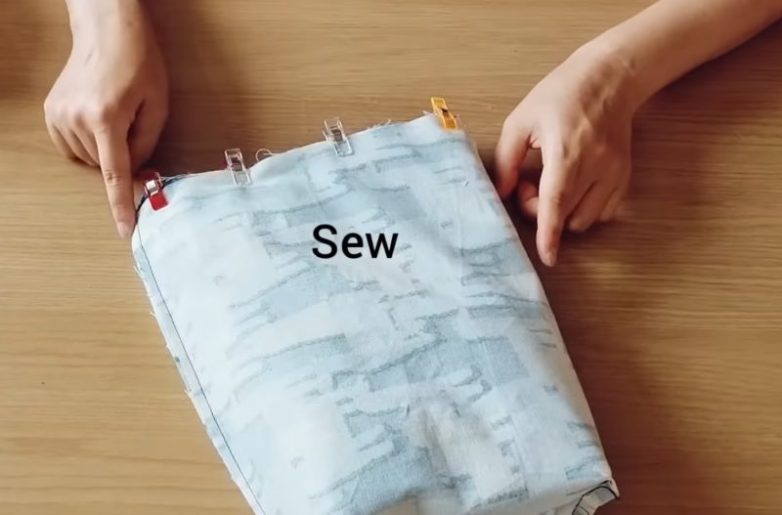 Полученные детали сложите лицом друг к другу и прострочите по трем сторонам. Аналогично поступите с деталями подклада. Для придания сумке объема уголки сумки и подкладки разложите плоско и отстрочите на расстоянии 5 см от угла, избыток ткани срежьте.