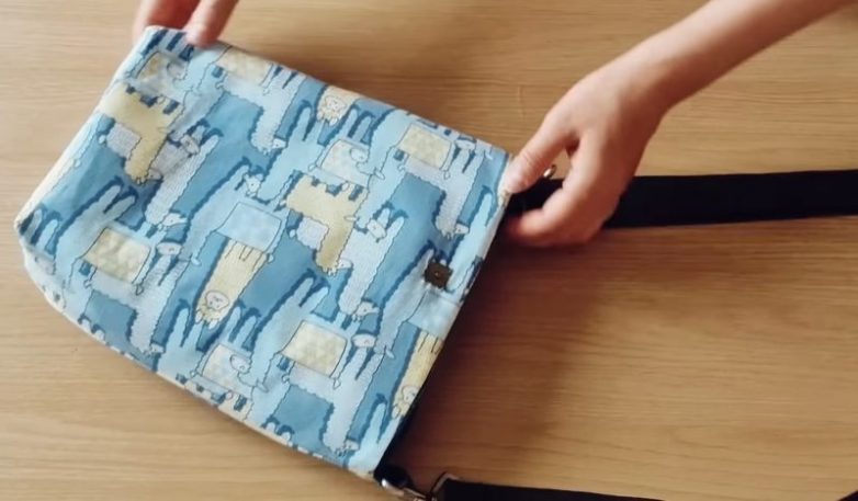 Прострочите изделие, выверните на лицевую сторону, после чего зашейте непрошитый участок. Прикрепите ручку.