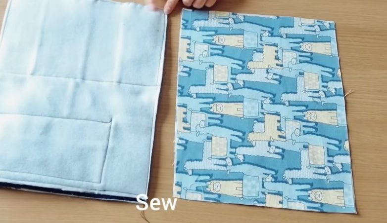 Получившиеся куски размером примерно 15 см на 20 см, соедините в две большие заготовки так, чтобы часть швов располагалась параллельно, а другая часть перпендикулярно. Это необходимо для придания большего декоративного эффекта. Заготовки выровняйте, обрезая излишки ткани и выступающие края.