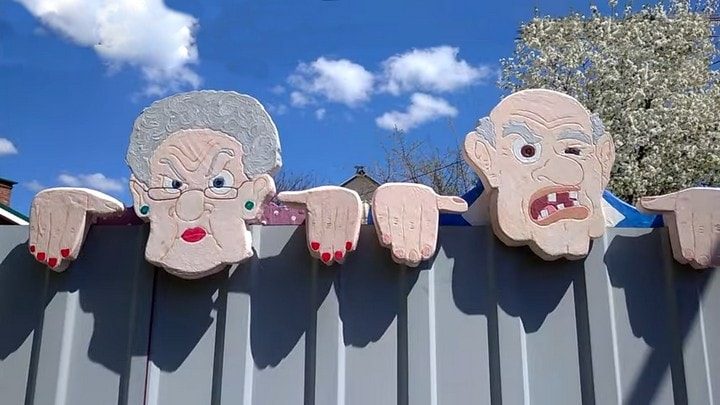 Никто не пройдёт без улыбки мимо забавных фигурок, выглядывающих из-за забора. Они могут быть добрыми или сердитыми, милыми или даже страшными 0 всё будет зависеть от ваших желаний и фантазии.