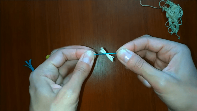 Получившиеся пучки перевязываем нитками в тон заготовки, а затем расправляем, чтобы получить маленькие цветочки.