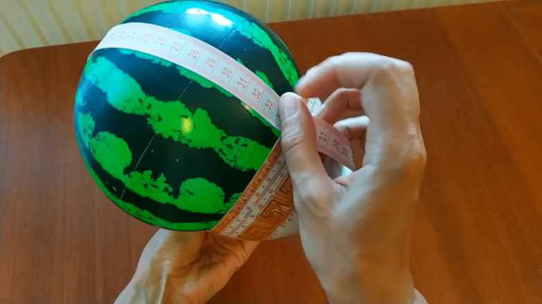 Берем мяч нужного размера. Подбираем емкость, которая на время будет использована в качестве подставки, а затем замеряем через верх расстояние до емкости.