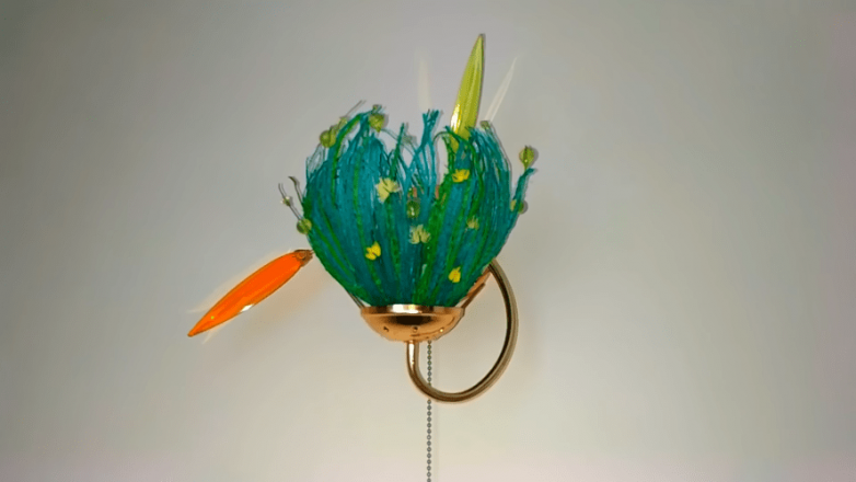 Более короткие цепочки можно не пропускать через центр, а складывать вдвое, не обязательно пополам, чтобы уходящие вниз концы находились на разных уровнях. Так результат будет более интересным. Единственное условие — направлять нити сверху вниз и не забывать о дополнительной проклейке.