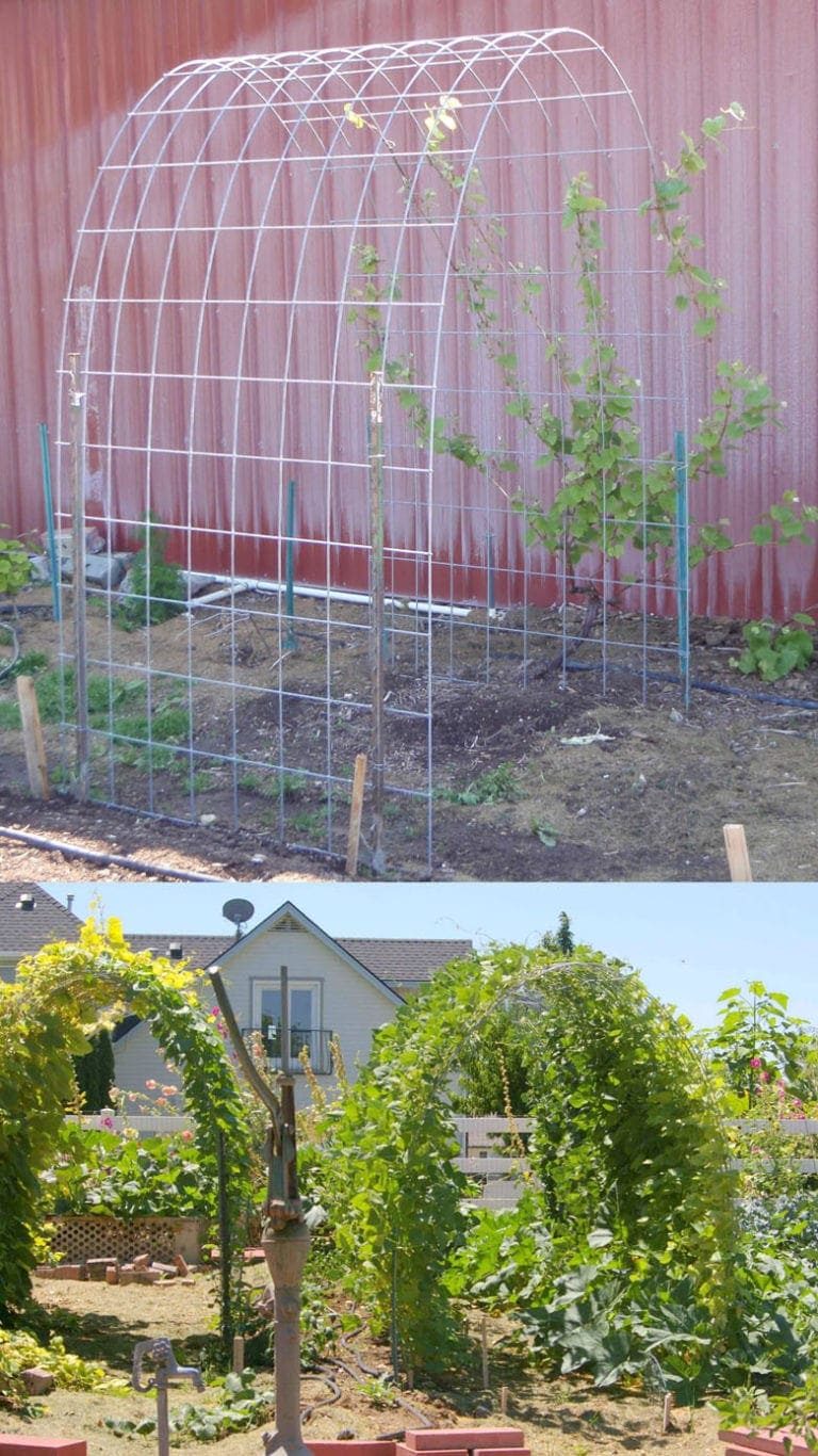 Зеленые арки с вьющимися растениями, огурцами и лозами