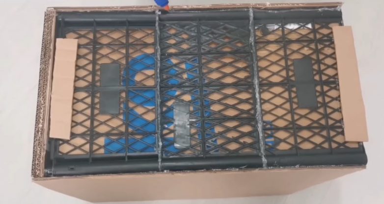 Для работы потребуется 3 ящика для овощей. У первых двух ящиков обрежьте верхнюю часть и вырежете дно. У третьего ящика дно необходимо оставить.