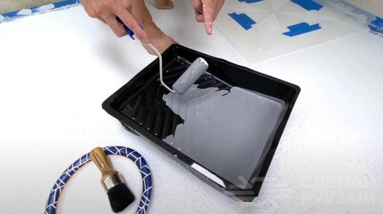Для узора используется серый цвет. С помощью трафарета оформляем всю нашу площадку.