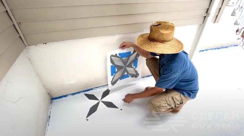 Имитация плитки на бетоне с помощью краски
