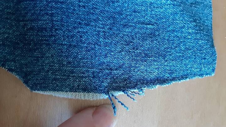 Джинсы нарежьте на полоски. Нарезайте с учётом того, что в дальнейшем вы будете их распускать (учитывайте направление долевой и поперечной нити).