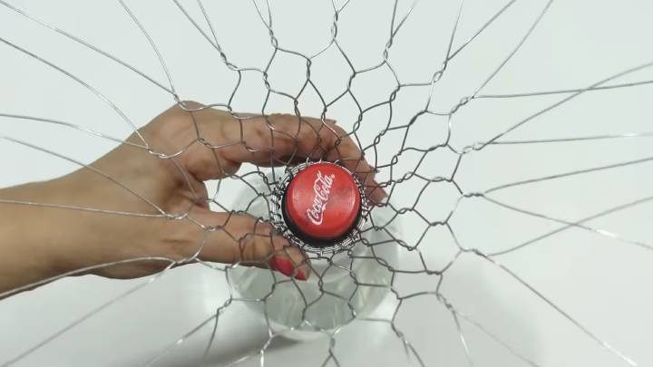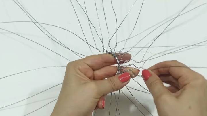 Обратите внимание, что скручивать проволоку нужно всегда в одном и том же направлении Чтобы было удобнее плести, можно установить кольцо с проволокой на бутылку с водой.