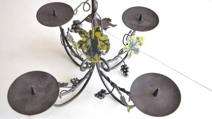Люстру также покрасьте в подходящий цвет горшкам. Установите горшки на люстру.