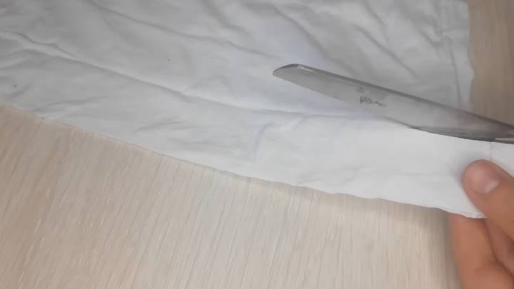 Когда посчитаете, что проплели достаточно, со всех сторон соедините полосы по три и свяжите обычной ниткой. Лишнюю длину ткани отрежьте.