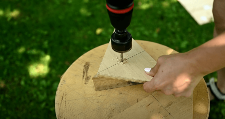 Далее переходим к изготовлению крыши. Для нее нам потребуются 2 треугольные заготовки подходящего размера, вырезанные из фанеры.