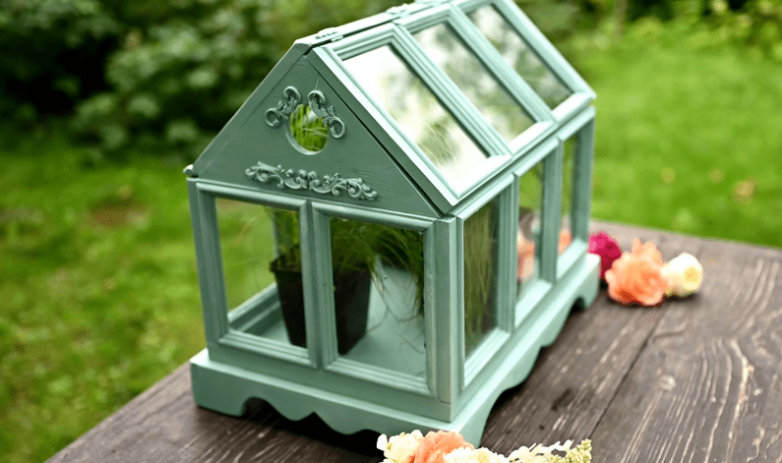 Возможно, не все догадываются, что недорогие деревянные фоторамки – на самом деле отличный материал для самых разнообразных проектов. Например, из них можно сделать вот такую декоративную или вполне функциональную теплицу-парничок.