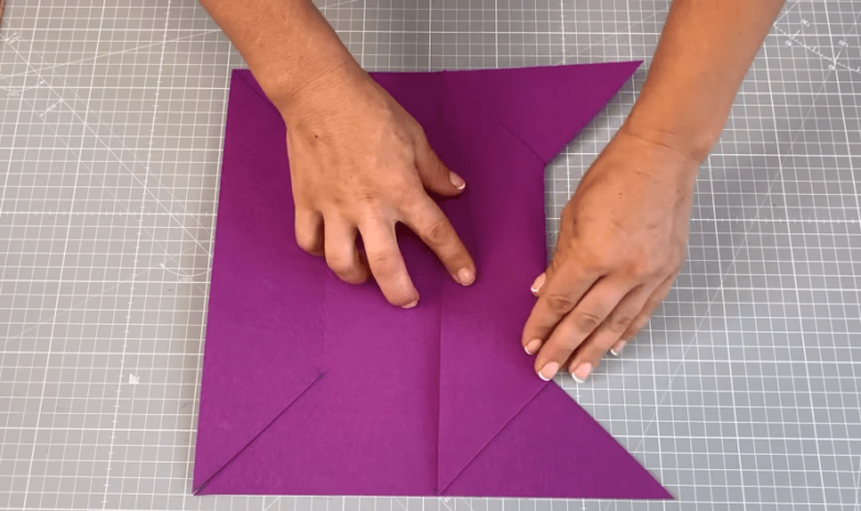 Дальше все предельно просто. Находим середину фетрового квадрата и совмещаем ее с серединой бумажного. На фетровой заготовке проставляем точки, соответствующие углам бумажного квадрата. А затем прокладываем отрезки от угла заготовки к соответствующей точке. По сути соединяем по диагонали каждый из углов большого и маленького квадратов.
