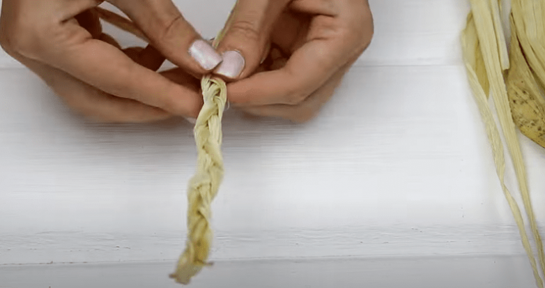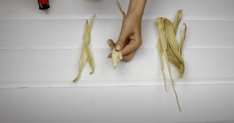 Предварительно снятые листья необходимо высушить естественным образом, просто выложив на бумагу. В среднем на это требуется около 2 дней. При необходимости кукурузные листочки можно заменить на рафию.