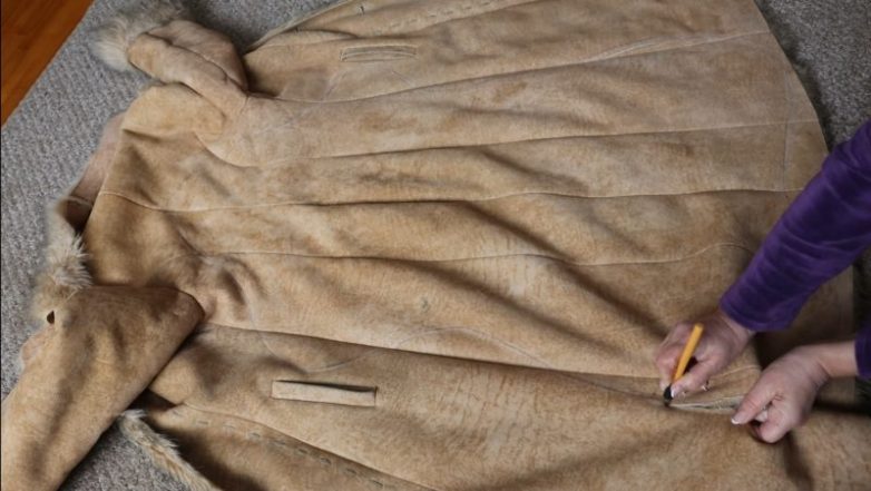 Если дубленка сшита полосами, при разрезании их края могут распороться. В этом случае края необходимо прострочить на швейной машинке или прошить вручную.