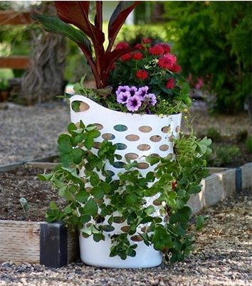 При желании, для создания оригинальной композиции, в верхней можно высадить и другие уличные растения.