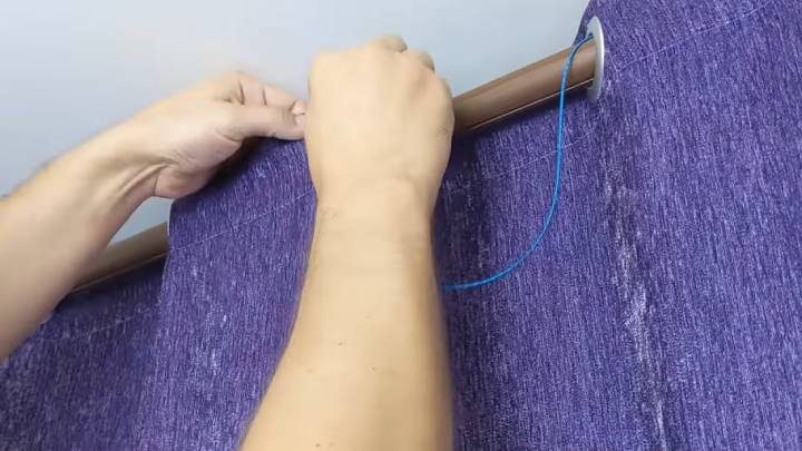 Затем шнур протяните сквозь кольца штор.