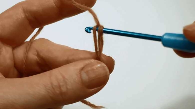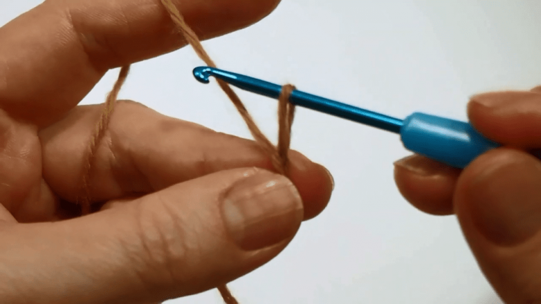 Набираем 1 воздушную петлю в начале работы и подтягиваем. Следующую воздушную петлю вытягиваем на нужную высоту и только после этого захватываем рабочую нить и протягиваем через удлиненное звено цепочки.