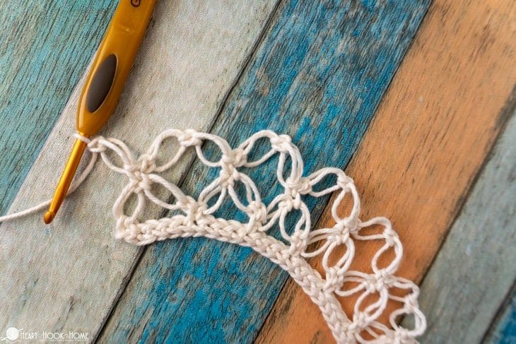 На крючке теперь 2 петли, которые нужно закрыть в 1 прием.