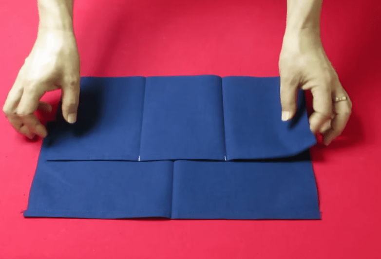 Одно из подготовленных полотен делим на 3 равных части, а второе на 2, чтобы получить разные по размеру глубокие внутренние карманы.