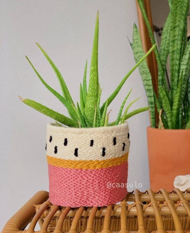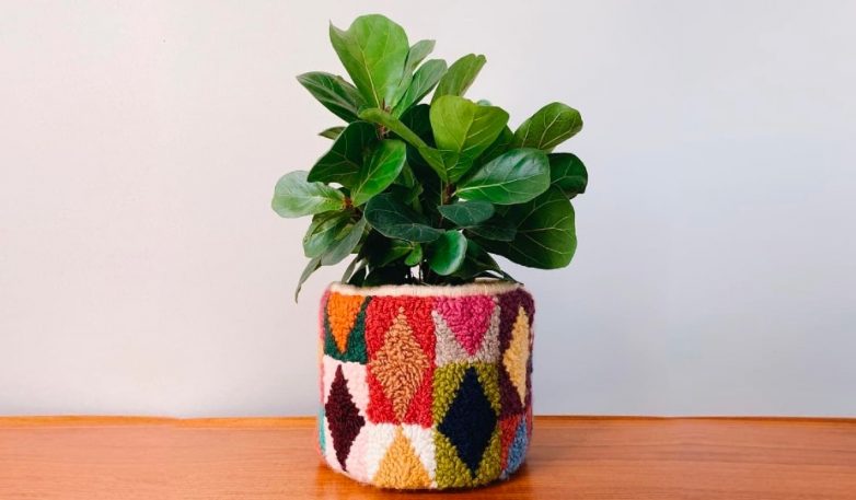 Делимся вдохновляющими идеями корзин и чехлов для цветочных горшков в технике ковровой вышивки, которые помогут создать в доме особую атмосферу тепла и уюта.