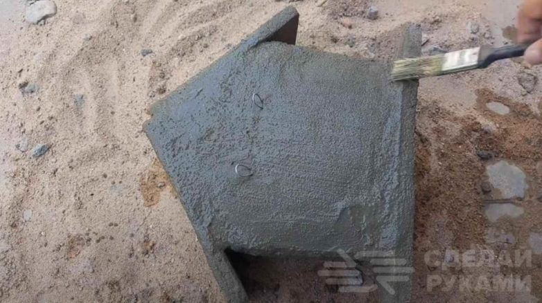 На следующем этапе изготавливаем из цементного раствора основание и элементы крыши (скаты) для скворечника.