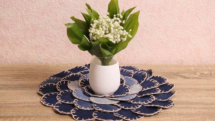 Протертые джинсы, а также просто старенькие, которые давно лежат в шкафу и не надеваются годами, можно смело нарезать на круги и шить чудесный декор для дома! Делается очень просто, получается эффектно.