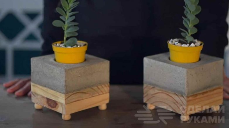 В данном обзоре расскажем, как сделать декоративную подставку для маленького цветочного горшка. Для этого будем использовать цемент, дерево и немного металла.