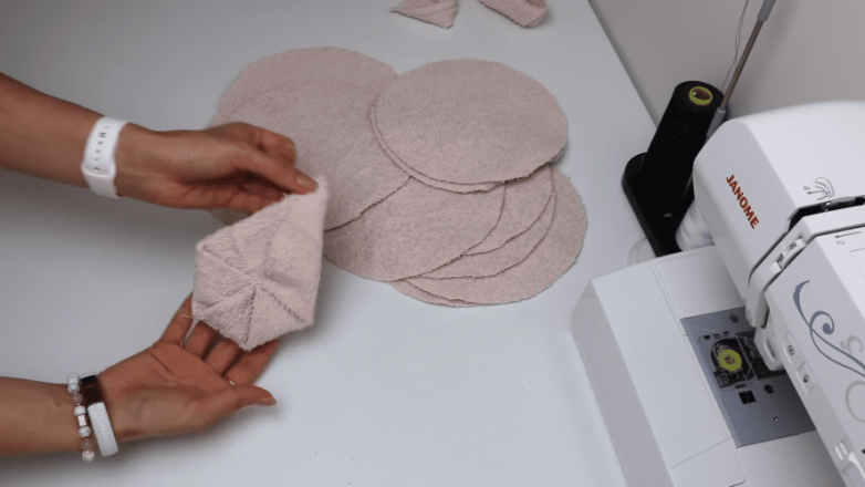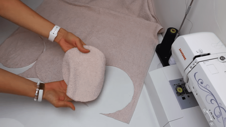 Обрезаем на полотенцах кромку и прошвы, на которых отсутствует махра. При помощи круглого шаблона (диаметр 20 см) размечаем полотенца, а затем вырезаем заготовки.