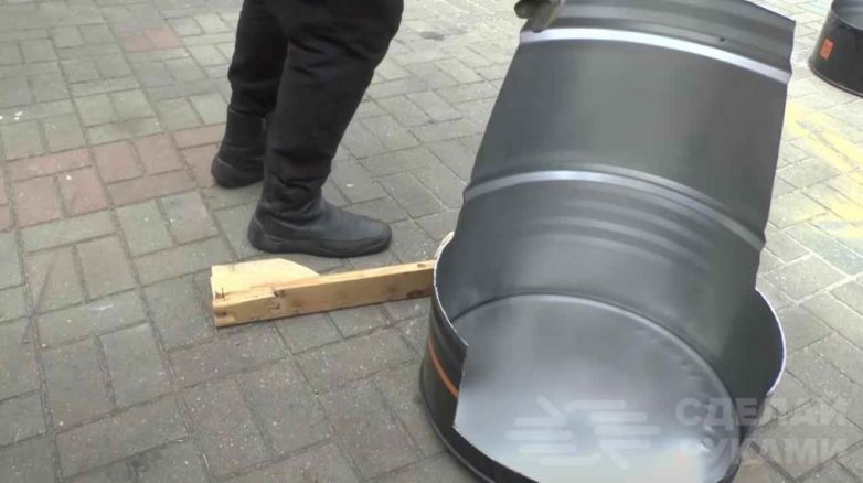 Обратите внимание: если в бочках хранились горючие материалы (бензин или растворитель), то прежде чем резать болгаркой, их нужно обязательно наполнить водой.