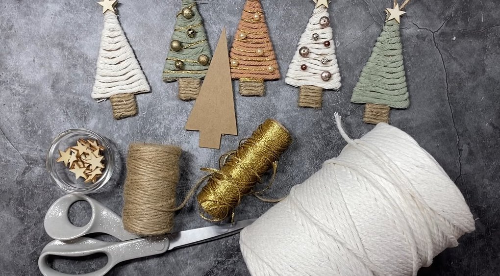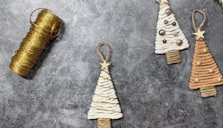 Сделать декор еще более праздничным поможет золотая или серебряная нить. Буквально несколько витков нити преобразят елочку.