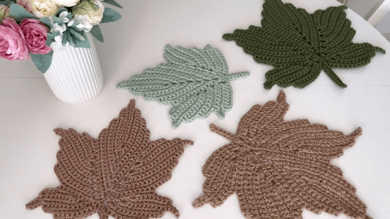 Декоративные кленовые листья готовы. При желании связать их можно сколько угодно. Объемные, с четкими прожилками, они станут отличным интерьерным украшением.